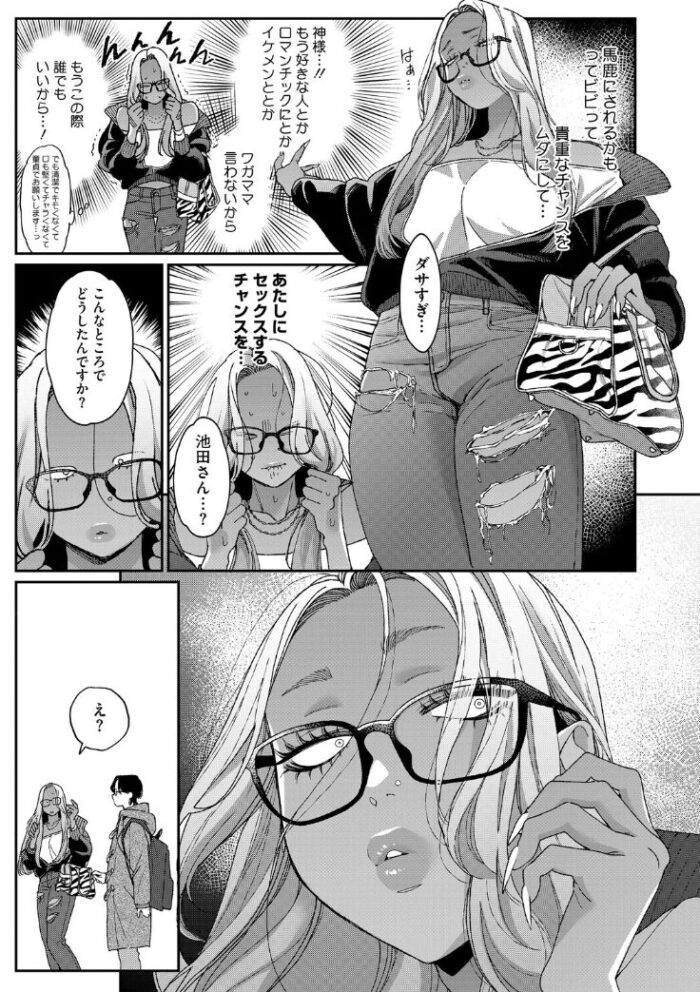 主人公の池田さんは黒い肌に金髪という、大人になっても典型的な黒ギャルという雰囲気を持ち派手な印象ですが、これまで全く経験が無いというのは意外でした。 イケイケな雰囲気を醸し出しているのに、この時点でどんなストーリーなのか気になってきた!