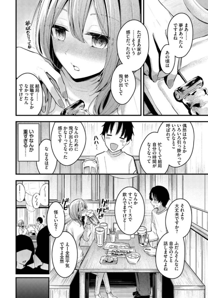 しかし初めて会ったばかりの相手と、その場の勢いとはいえやっちゃうとか普通は躊躇しますよね。しかも処女と童貞なのに騎乗位に挑戦してしまうという、なかなかのチャレンジャーぶりも発揮。こんなのよほど酔っぱらってないとできないわと思いつつ、汗だくで初めての行為に挑む2人を微笑ましく見守ってしまいました。