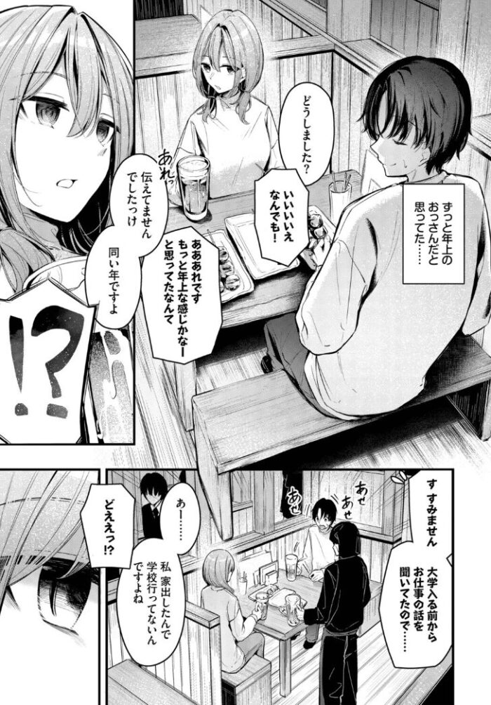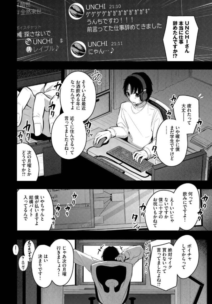 一見して言葉にするとシンプルなもので、ただネットで知り合った者同士がオフ会で実際に会って女の子とやっちゃうだけなのにすごい臨場感ですね。            実際に会ってこんなにかわいい子が来たらテンション爆上がりですが、主人公の男はそこまでな反応でなんだか不思議。これも今どきなの?令和の人間っぽさを勝手に感じちゃいました。